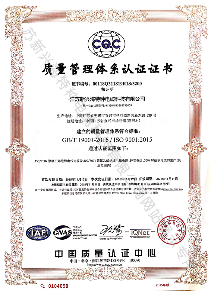 產(chǎn)品質(zhì)量室企業(yè)生存的根本,是命脈。能夠獲得全球前三的美國伊頓公司質(zhì)量獎,是對新興海特種電纜線纜質(zhì)量 的最好肯定。